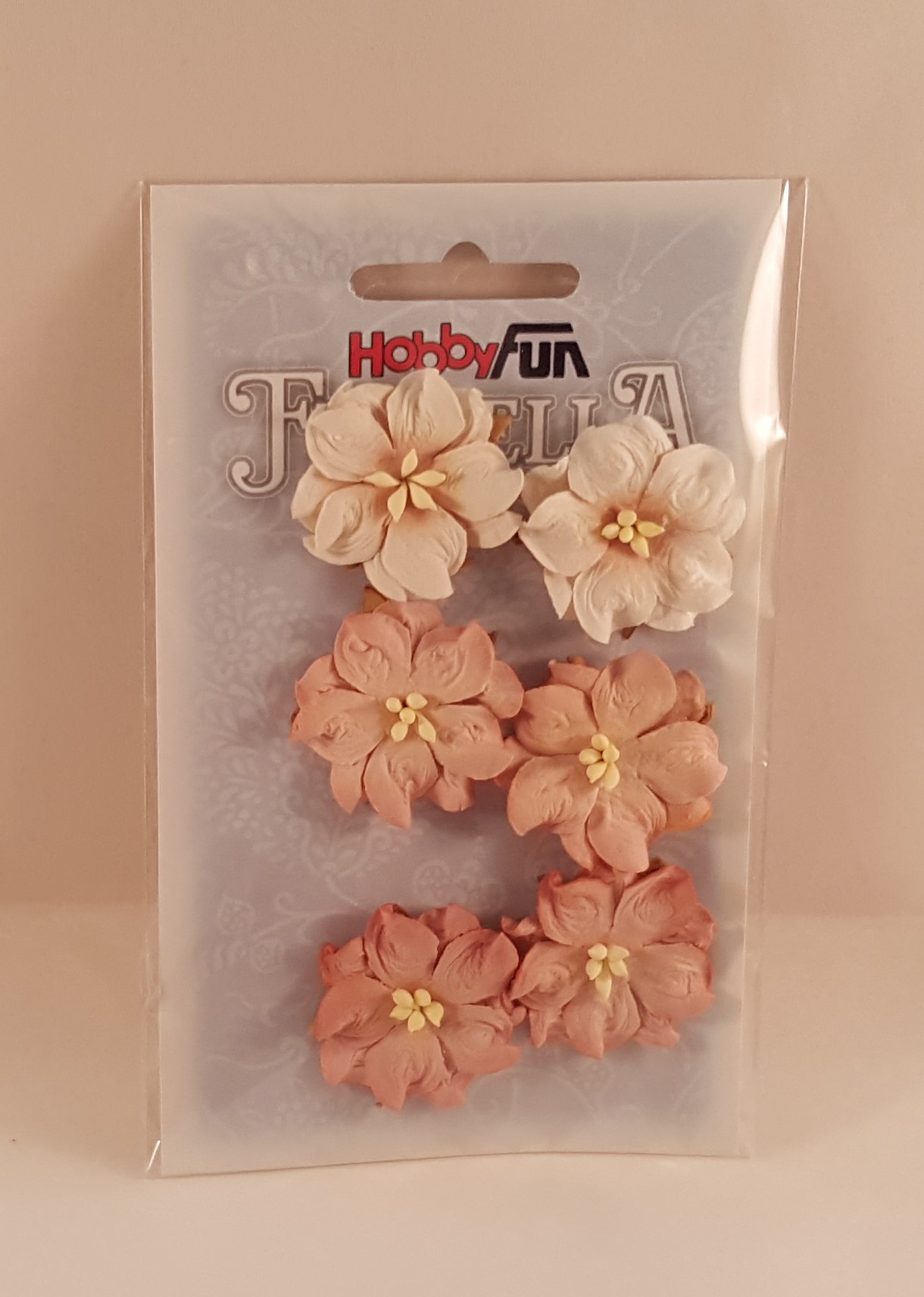 Flores de papel salmão claro e branco para scrapboobing 3,00 € Desconto de %. Partilhar Comprar Contactar Hobby Fun Florella Flores de Papel Cor salmão claro e branco- 6 flores